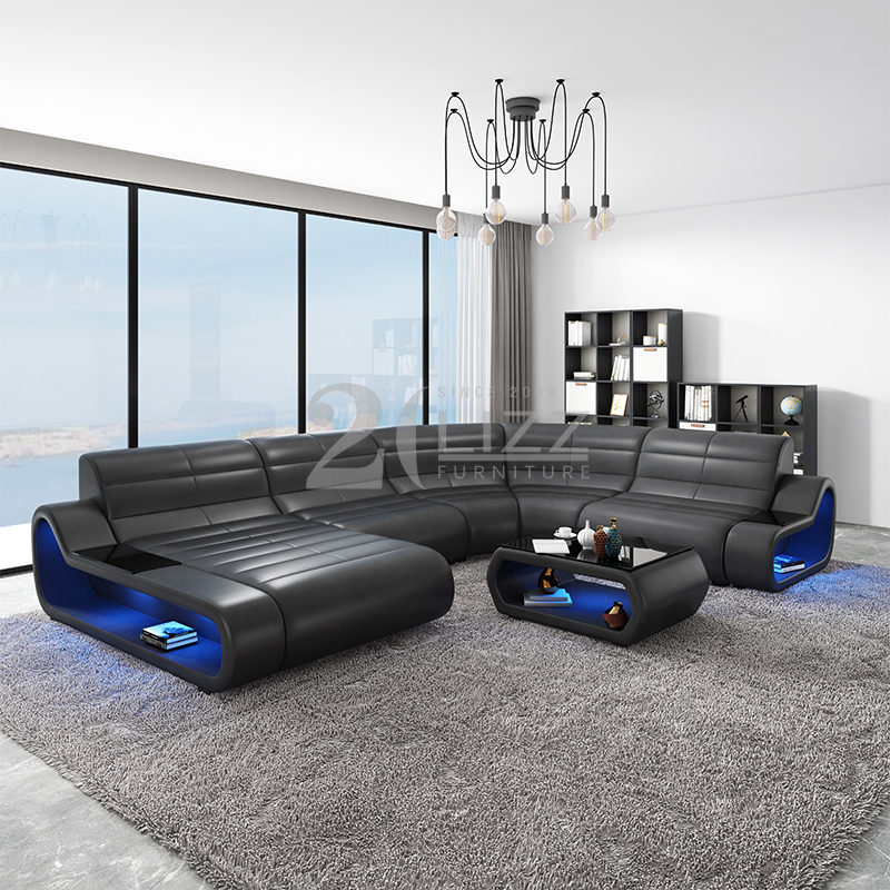 Esta interpretação moderna do sofá de lounge intemporal vem com encosto de cabeça ajustável, luzes remotas de LED em ambos os haters. Mesa de centro e suporte de TV é opcional para combinar com o sofá, a mesa de café e o suporte de TV vem com luz LED. Está disponível em cinza, bege, marrom e todas as outras cores que você precisa para fazer uma moderna sala de estar para você. Design popular com qualidade maravilhosa e funções incríveis.