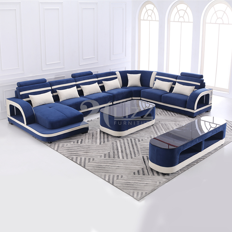 Esta interpretação moderna do sofá de lounge intemporal vem com encosto de cabeça ajustável, luzes remotas de LED em ambos os haters. Mesa de centro e suporte de TV é opcional para combinar com o sofá, a mesa de café e o suporte de TV vem com luz LED. Está disponível em cinza, bege, marrom e todas as outras cores que você precisa para fazer uma moderna sala de estar para você. Design popular com qualidade maravilhosa e funções incríveis.