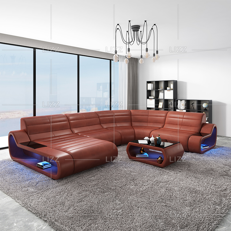 Lizz mobília moderna sofá de luxo / sofá é absolutamente superior opção para o seu design de casa. Este lindo sofá caracteriza com luzes LED, que não só adicionam um ar de luxo à peça e do seu quarto, mas também fornece um lugar mais confortável para se inclinar enquanto relaxa com sua família.